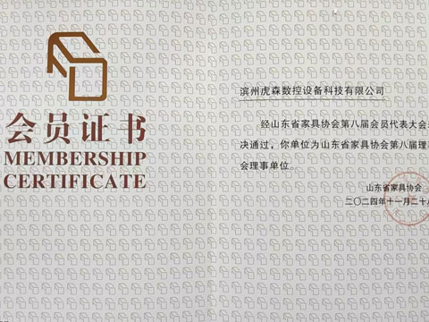 濱州虎森數控設備科技有限公司榮膺山東省家具協會理事單位,共譜行業新篇